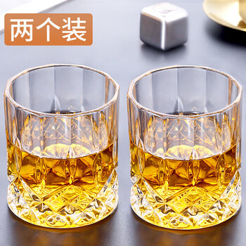 拜杰玻璃威士忌酒杯 欧式雕花烈酒杯洋酒杯家用水杯玻璃杯套装 2只装
