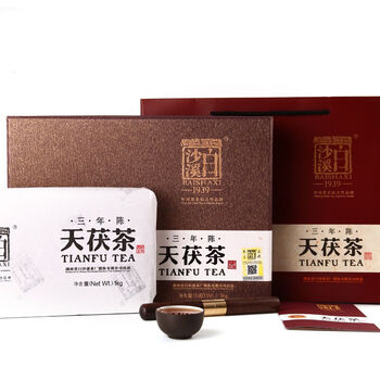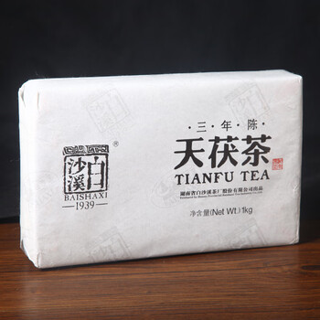 白沙溪 茶叶安化黑茶天茯茶三年陈金花茯茶砖茶叶礼盒装1KG送礼袋