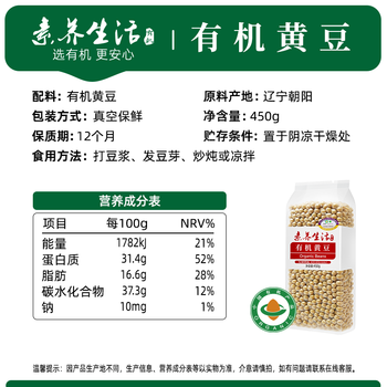 素养生活有机黄豆450g 东北大豆 黄豆 黄豆酱原料 打豆浆可发芽五谷杂粮
