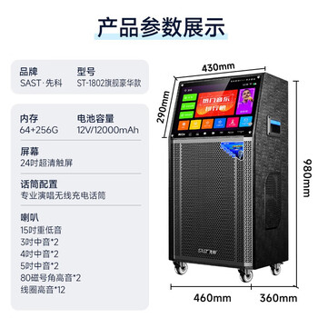 先科广场舞音响带显示屏幕视频k歌点歌机一体机家用卡拉ok家庭ktv音响套装户外K歌唱歌全套设备ST-1802