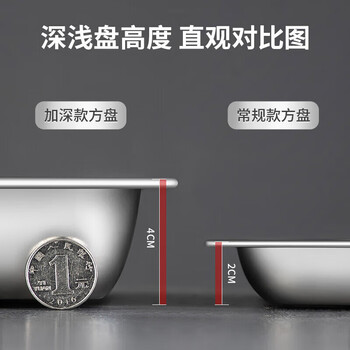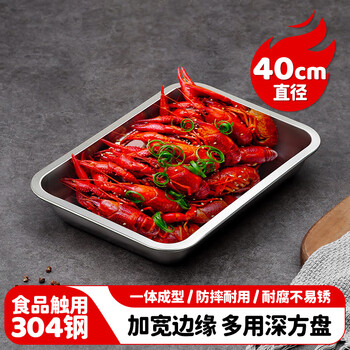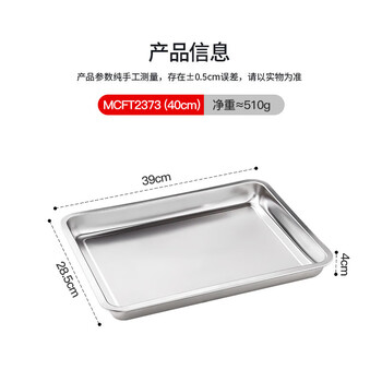 美厨(MAXCOOK)304不锈钢盘子方盘 加深方盘长方形餐盘 烧烤托盘40cm MCFT2373