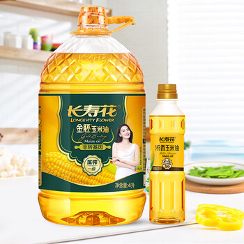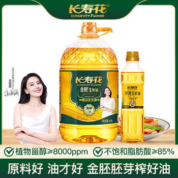 长寿花金胚玉米油 4L+浓香玉米油400ml 非转基因压榨一级食用油套装