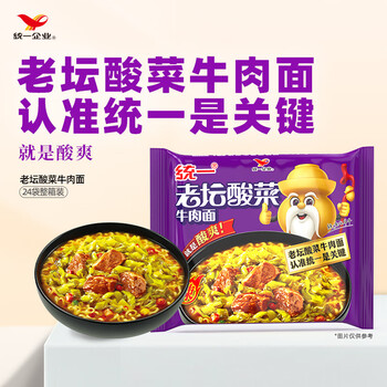 统一老坛酸菜牛肉面 121g*24袋 整箱装 方便面泡面 夜宵零食
