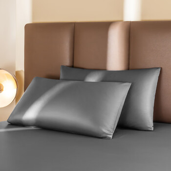 京东京造60支轻奢高支高密贡缎全棉纯色五星级酒店枕套48*74cm2只装雪灰