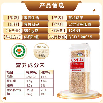 素养生活 有机糙米550g/袋