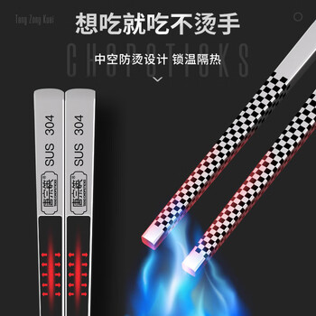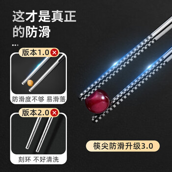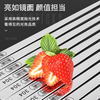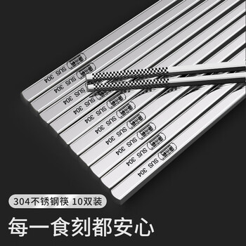 唐宗筷 304不锈钢筷子-方形刻字10双装 家用商用酒店用 防滑防烫