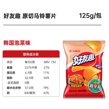 好丽友(ORION)好友趣韩国泡菜味125g 追剧休闲零食薯片膨化食品儿童解馋小吃