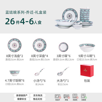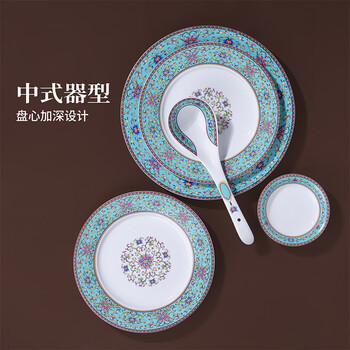 景德镇(jdz)陶瓷餐具整套中式家用碗碟套装乔迁新居礼品高档大气实用蓝珐琅彩