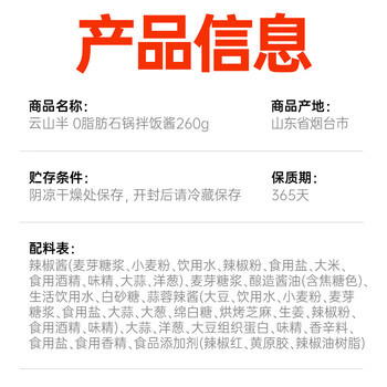 云山半0脂肪韩式石锅拌饭酱260g低脂辣椒酱辣炒年糕部队火锅调味烤肉酱