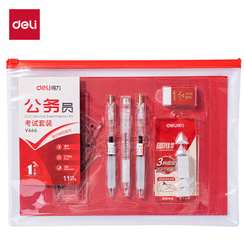 得力连中三元公务员考试套装11件套 绘图套尺+中性笔+2B涂卡笔+笔芯+橡皮+垫板2B铅笔 考试专用V666