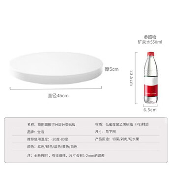 全适 45*5cm圆形可分层加厚PE环保切肉切菜板砧板 商用餐饮案板 白色