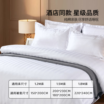 然牌 纯棉被套单件 60支全棉酒店缎条被罩 白色被套200x230cm