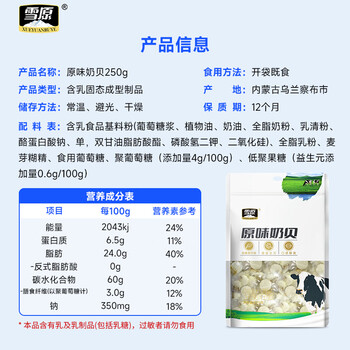 雪原原味奶贝奶片干吃牛奶片 内蒙古特产儿童休闲零食250g独立包装