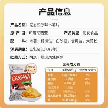 克恩兹印度尼西亚进口 Kernes 克恩兹 原味木薯片125g