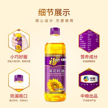 福临门压榨一级葵花籽油 900ml 充氮保鲜 外卖新客专享