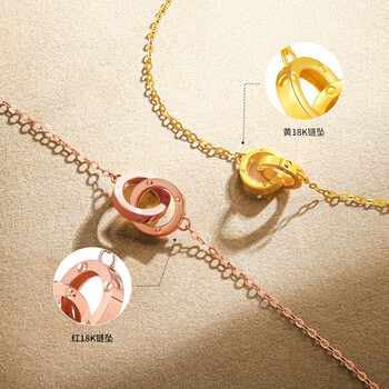 周六福环环相扣18K金项链生日礼物送女友 红18K金约0.85g-40+5cm
