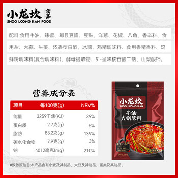 小龙坎牛油火锅底料339g/袋 调味品四川冒菜麻辣红汤重庆老火锅底料