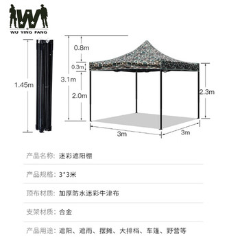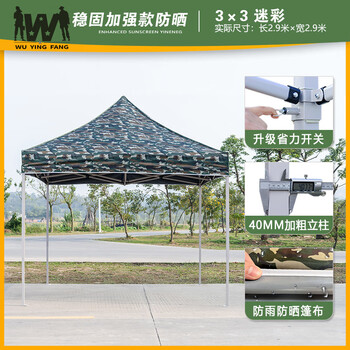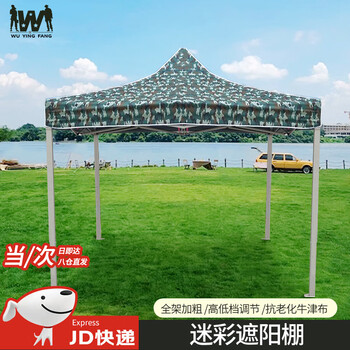武营坊 遮阳伞 迷彩遮阳蓬折叠式四脚帐篷遮阳棚 3*3米无围布