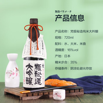 梵极秘造清酒 720ml 纯米大吟酿 日本进口 辛口 日式佐