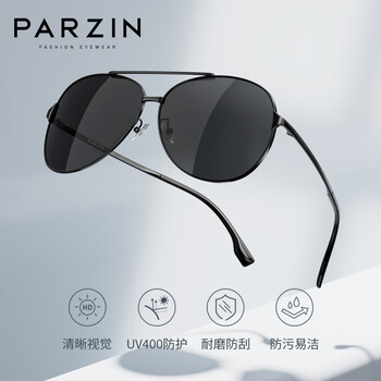 帕森(PARZIN)偏光太阳镜型男眼镜双梁经典蛤蟆镜驾驶墨镜PZ8131A黑框黑灰片