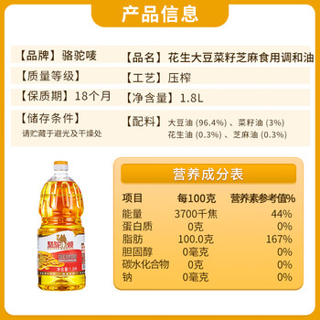 骆驼唛食用菜籽调和油1.8L*1