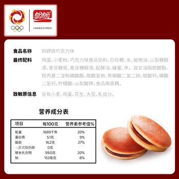 盼盼 铜锣烧 美食日式夹心面包糕点饼干休闲零食巧克力味240g