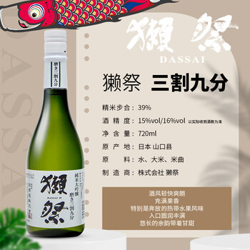 獭祭Dassai 39三割九分清酒 纯米大吟酿 日本进口720ml 礼盒装送礼