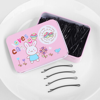 遇上佳人 黑色发夹一字夹200根弯夹隐形发卡刘海边夹盘发铁碎发夹子铁盒装