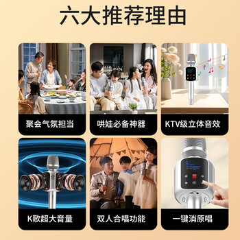 权盟k歌麦克风话筒音响一体式机家庭ktv娱乐自带声卡拉OK户外无线蓝牙直播唱歌扩音录音设备 生日礼物