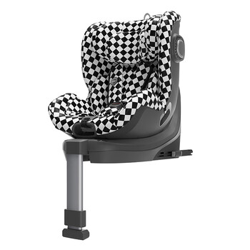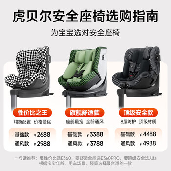 虎贝尔(HBR)E360儿童安全座椅0-6-12岁宝宝车载通风散热i-Size认证黑白棋盘格