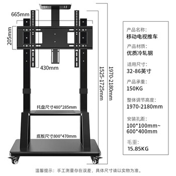 贝石 32-86英寸移动电视支架通用电视支架落地 电视机移动推车/会议教学商用家用一体机显示器电视挂架