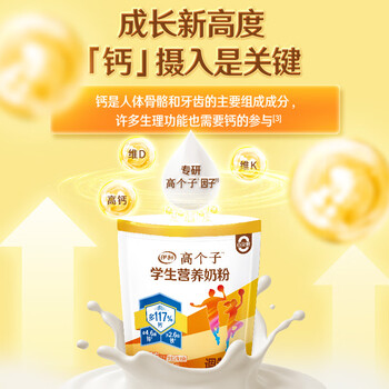 伊利高个子学生奶粉 儿童奶粉 营养高钙高锌高铁 生牛乳0蔗糖 400g