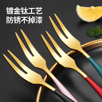 美厨(maxcook)304不锈钢水果叉 甜品叉月饼叉 彩色4件套 MCGC3660