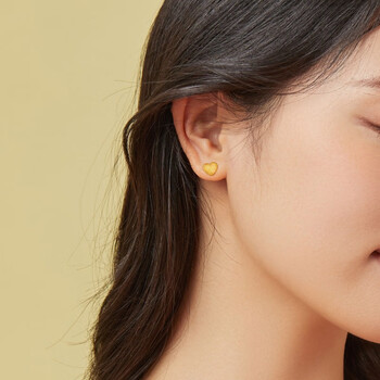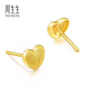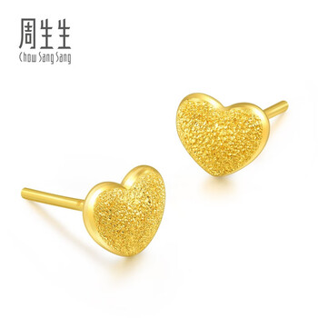 周生生黄金耳饰 足金闪砂爱心耳钉一对黄金耳环女 68717E定价