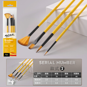 蒙玛特(MontMarte)水粉笔4支装水彩画笔儿童水彩画画笔美术颜料勾线笔扇形排笔学生水彩笔套装BMHS0010