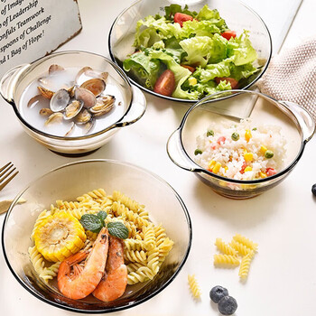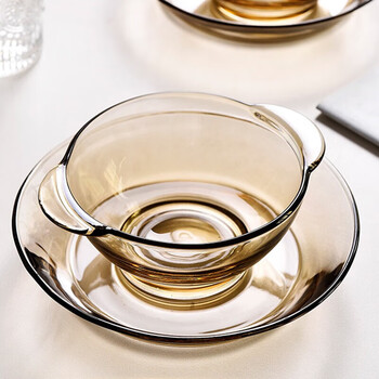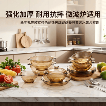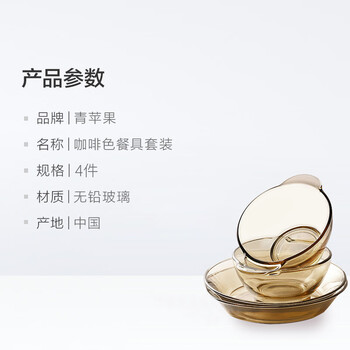 青苹果新年礼物欧式茶色耐热玻璃碗盘餐具套装水果沙拉碗2碗2盘4件套