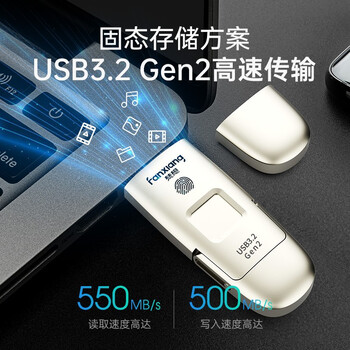 梵想(FANXIANG)固态U盘 手机u盘 1TB USB3.2 Type-C 指纹加密高速优盘 移动固态硬盘 FP651 香槟银