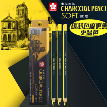 樱花(SAKURA)素描铅笔炭笔12支整盒装(软炭)软炭软中硬美术生写生速写绘画专用画笔速写马克笔绘画