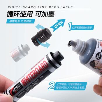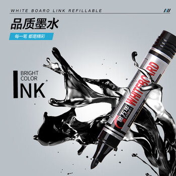 金万年黑色可加墨水白板笔10支/盒办公会议可擦易擦 G-634