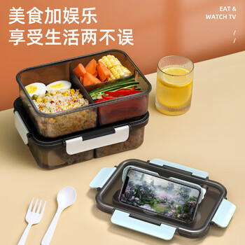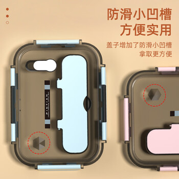 品喻(PINYU)大容量饭盒带叉勺 学生上班族便携分格餐盒可微波炉加热1500ML 粉
