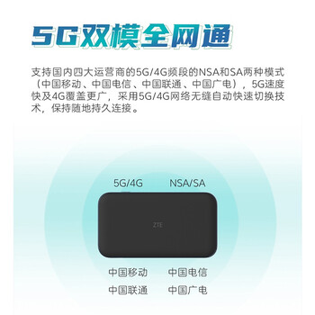中兴(ZTE)5G随身WiFi6/移动插卡路由器cpe/无线上网卡/千兆网口/MU5001