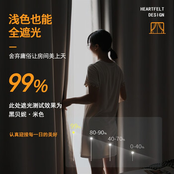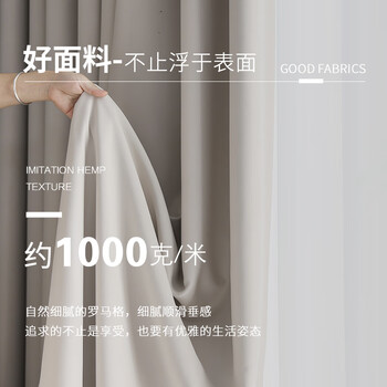 铭聚布艺(MINGJU) 窗帘 全遮光窗帘成品窗帘布 黑贝妮米挂钩式3米宽*2.7米高1片