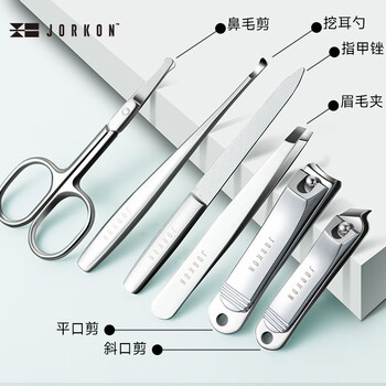 尖工指甲刀套装工具 6件男士斜口指甲剪钳鼻毛剪挖耳勺 送礼