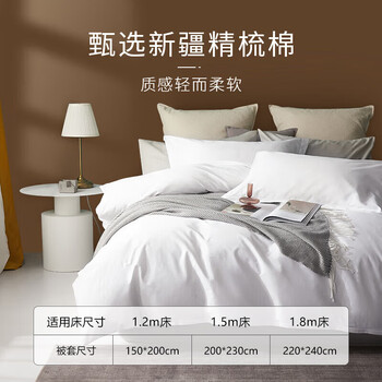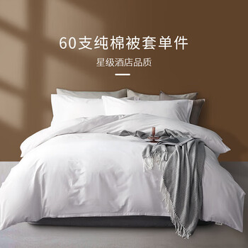 源生活 纯棉酒店白色被套单件 60支全棉宾馆宿舍被罩被单 150*200cm