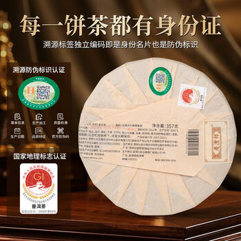 七彩雲南普洱茶 2011年易武古树茶特级普洱熟茶饼 零陆红印357g茶叶礼盒装