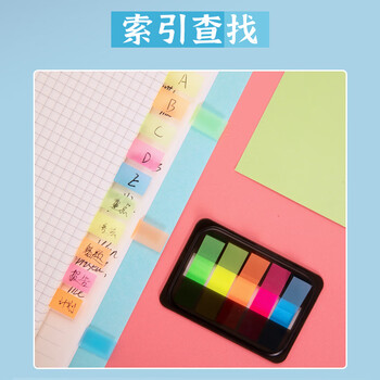 NVV 200张5色荧光膜指示索引标签贴 彩色便签小条便利贴书签便签条记号分类引索分页记事贴BL-03抽取式盒装