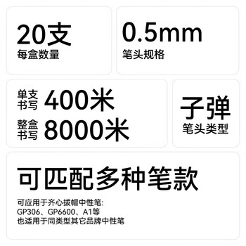 齐心(Comix)0.5mm黑色 拔帽中性笔子弹头笔芯 适用Q7/6600/Q009/GP306 水笔/签字笔替芯 20支/盒 ER933