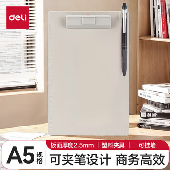 得力(deli)A5带笔夹耐用商务书写板夹文件夹菜单夹试卷资料收纳夹 混色发 办公用品