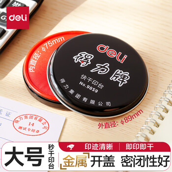 得力(deli)φ89mm金属圆盖财务快干印台印泥 办公用品 红色9859