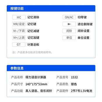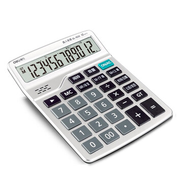 得力(deli)12位带闹铃语音办公桌面计算器计算机 学生/办公口算 银色 1532